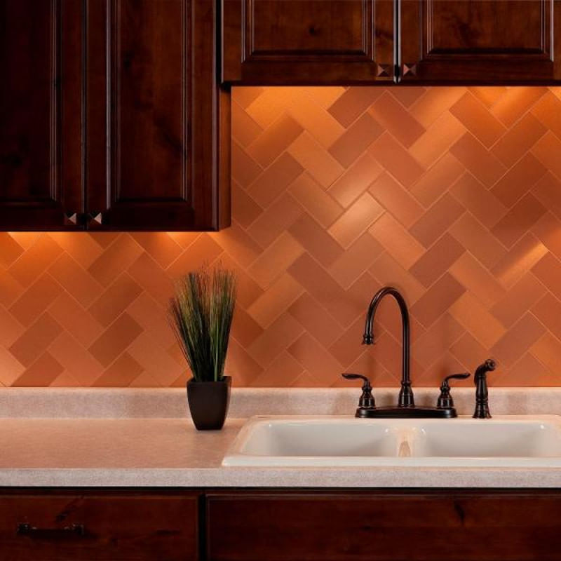 The kitchen backsplash is placed on the kitchen wall between the countertops and the wall if you're skillful you can play with the design by staining the boards. A shiny finish offers a modern feel while burnished copper lends itself to rustic styling. Copper tiles for dream house project.